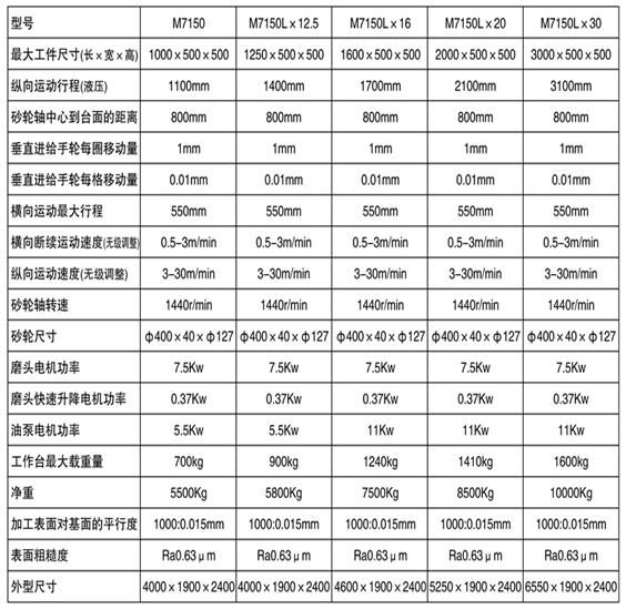 性能及工作特点: 此平面磨床以砂轮周边或侧面磨削工件的平面,工件可以固定在工作台上,或吸牢在电磁吸盘上,其材质可以是钢、铸铁、石墨、或有色金属。机床工作台的左右和磨头的前后运动都是用液压驱动,无极调速。磨头的前后运动也可手动操作。磨头的垂直方向除手动进刀外还配有快速升降机构,减轻劳动强度提高效率。
